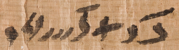 ⸗w "[Suffixpron. 3. pl. c.]" ⸗f "[Suffixpron. 3. sg. m.]" ꜣbd-3 "Monat 3" ꜣpd "Geflügel, Gans; Vogel" ꜣḥ "Acker" ỉ.ỉr-ḥr "vor, zu, an (in Briefen), bei, zur Zeit von [Präp.]" ỉw "[Bildungselement des Futur III]" ỉw "indem, wobei [Umstandskonverter]" ỉw-šsp "eingegangen als empfangen" ỉwi̯ "kommen; gekommen sein [Qual.]" ỉwtỉ "ohne [Präp.]" ỉmỉ-ꜣbd "Monatspriester" ỉmn "Amun [GN]" ỉni̯-ḥr "Onuris [GN]" ỉr.t "Auge" ỉr.t⸗w-rṯ "Iretu-redj [PN]" ỉr.t-ḥr-r⸗w "Inaros [PN]" ỉt-nṯr "Gottesvater [Priestertitel]" ꜥwỉ "Haus, Platz, Ortschaft, Bezirk, Türflügel" ꜥnḫ "leben" ꜥnḫ-pꜣ-ẖrd "Chapochrates [PN]" wr "groß [Adjektiv]" whr "Hund" wsỉr "Osiris [GN]" wsỉr-wr "Osoreris [PN]" pꜣ "der [def. Art. sg. m.]" pꜣ-whr "Pouoris [PN]" pꜣ-ẖr-ḫnsw "Pchorchonsis [PN]" pꜣ-di̯-ỉmn-nsw-tꜣ.wỉ "Petemestous [PN]" pꜣỉ "dieser [Demonstrat. sg. m.]" pꜣy⸗f "sein" pr "Haus" pr.t "Aussaat-Zeit, Peret, Winter" pr-ỉmn "Tempel des Amun" pr-ꜥꜣ "König" m-sẖꜣ "geschrieben von (wörtl.: im Geschriebenen)" mỉ-nn "ebenso, wie vorhin" mn "Min [GN]" mnỉ "Hirte" mnỉ-ꜣpd / mnỉ-ỉpd "Gänsehirt" mḥ "füllen, voll bezahlen" mtỉ "zufrieden sein, zustimmen" n "des [Genitiv]" n; n.ỉm⸗ "in, wegen [< m] [Präp.]" n⸗f "für ihn" n-rn "besagter, betreffend, wegen, im Namen von" nꜣ "die [def. Art. pl. c.]" ns "zugehörig zu" ns-ỉni̯-ḥr "Es-anouris [PN]" ns-mn "Esminis [PN]" nsw "König" nsw-tꜣ.wỉ "König der beiden Länder" ntỉ "[Relativkonverter]" ntỉ.ỉw "[Relativkonverter]" nṯr "Gott" r "werden [im Futur III vor Infinitiv]; um zu [vor Infinitiv]" r "zu, hin, auf, in Bezug auf [Präp.]" r.r⸗f "zu ihm" r⸗w "zu ihnen" r-ḏr.t "von, in die Hand, unter Leitung von [Präp]" rn "Name" ḥꜣṱ "Herz" ḥw "Vermehrung, Profit" ḥw.t / ḥ.t "Hu, Diospolis parva [ON]" ḥn "befehlen" ḥr "Gesicht" ḥr "Horus [GN]" ḥsb.t "Regierungsjahr" ḥtp "Opfergabe; Einkommen (der Priester)" ḥtp-nṯr "Gottesopfer, Opfergut, Domäne" ḫnsw "Chons [GN]" ẖr "Knabe, Diener" ẖrd "Kind, Kinder" sꜣ "Sohn" swṱ "abliefern, verbinden" sp "Rest" st "[enklit. Pron. 3. pl. c.]" sṯꜣ.t "Arure [Flächenmaß]" šꜥ "Sand" šmw "Ernte, Pachtzins" šsp "empfangen" ḳḥe "Bezirk, Distrikt" tꜣ "Land, Welt, Erde" tꜣ "die [def. Artikel sg. f.]" tꜣỉ "diese [Demonstrat. sg. f.]" dmỉ "Stadt" drywš "Dareios [KN]" ḏi̯.t "geben" ḏr.t "Hand" ḏd "sagen, sprechen" ḏd-ḥr "Teos [PN]" ḏd-ḫnsw-ỉw⸗f-ꜥnḫ "Chensephonychos [PN]" 20 "20" 3 "3" 35 "35" 5 "5"